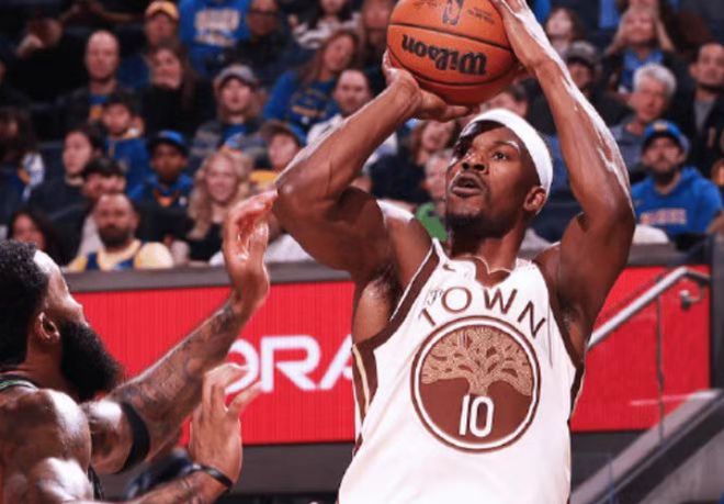 愛德華茲24投12中狂砍了39分5助攻,讓布朗的41分6籃板7助攻淪為空砍。沒有庫里的勇士隊,在巴特勒的帶領下,主場104-96戰勝了魚腩鵜鶘,以11勝10負暫列第8名,只落后第7的太陽1個勝場,巴特勒15投7中,14罰10中貢獻了24分8籃板10助攻,小佩頓爆發14投9中拿到了19分11籃板。
